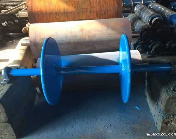 压带轮:包括左皮带支架和右皮带支架,所述左、右皮带支架分别对称设置在皮带的两侧,在左皮带支架和右皮带支架之间可转动的连接有挡轮,所述挡轮为圆柱形且水平设置在皮带的上方。在左皮带支架和右皮带支架上还对应设有可转动的左转轮和右转轮,所述左转轮和右转轮分别设置在竖直方向上且均与皮带的边沿接触。本实用新型的压带轮机构能够完全限制皮带的跳动,使得皮带被牢牢的限制在设定的空间范围内,避免了物料滑出皮带,而且避免了卡带的情况,保障了皮带的正常运行。压带轮主要用于改变输送带的运行方向,压带轮用于输送带上表面(承载面)。