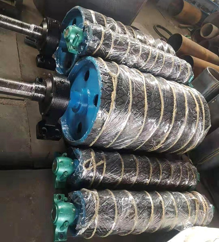 是输送机传递动力的部件,表面有光钢面,人字形和菱形花纹橡胶覆面。小功率、小带宽及环境干燥时可采用裸露光钢面。人字形花纹胶面摩擦系数大,防滑性和排水性好,但有方向性。菱形胶面用于双向运行的输送机。