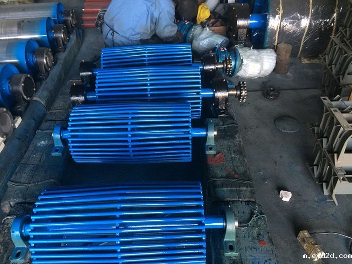 鼓型排渣滚筒系列两端设置倒锥体结构,接触面采用轮幅式,便于物料特别是大块物料的排除,在轮幅工作面通过特殊工艺包覆聚氨酯弹性体耐磨材料,以利于提高耐磨性能及清扫效果,完全保护滚筒和胶带,接触面采用鼓型结构,可起到纠偏作用。