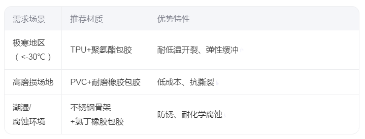 注意事项:定期检查包胶层磨损情况,避免硬物刮擦;低温环境下需验证材质的抗脆裂性。
